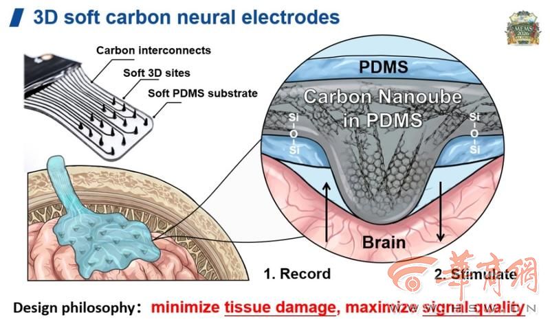 植入式脑机接口是微纳制造、微电子、人工智能、脑科学等交叉领域的最前沿技术,其核心在于通过植入大脑的传感器实时解读神经元放电信号,实现大脑与外部设备的直接交互,作为连接大脑神经网络与外部设备的信息“高速公路”,其在神经疾病诊疗与人体机能增强领域,具有巨大的应用潜力。要将这条“高速公路”真正铺设进大脑,必须要有一个高性能的“收费站”来精准捕获神经信号,这个关键的枢纽就是——植入式脑机接口电极。然而植入式脑机接口电极领域存在一个关键难题,如何平衡植入的损伤与收益,让电极在大脑表面长期稳定工作?如果电极无法稳定工作,将导致信号质量急剧下降、刺激定位失准,甚至引发组织炎症反应,导致整个系统失灵。